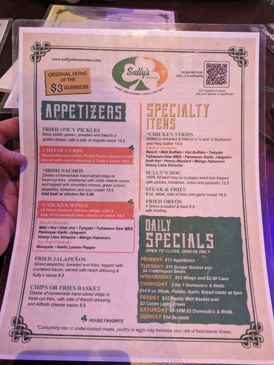 Welcome to Sully's Irish Pub, an inviting spot nestled in West Des Moines, where the lively atmosphere complements a well-curated menu of classic pub fare. Known for its exceptional cheese curds—hailed as "the best damn cheese curds" by patrons—you’ll find comfort food that warms the soul.